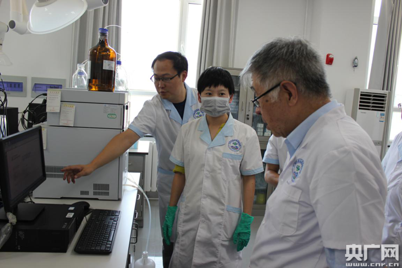 龐國芳院士(右一)正在指導檢測工作(央廣網發(fā) 蘭州食品藥品檢驗檢測研究院供圖)