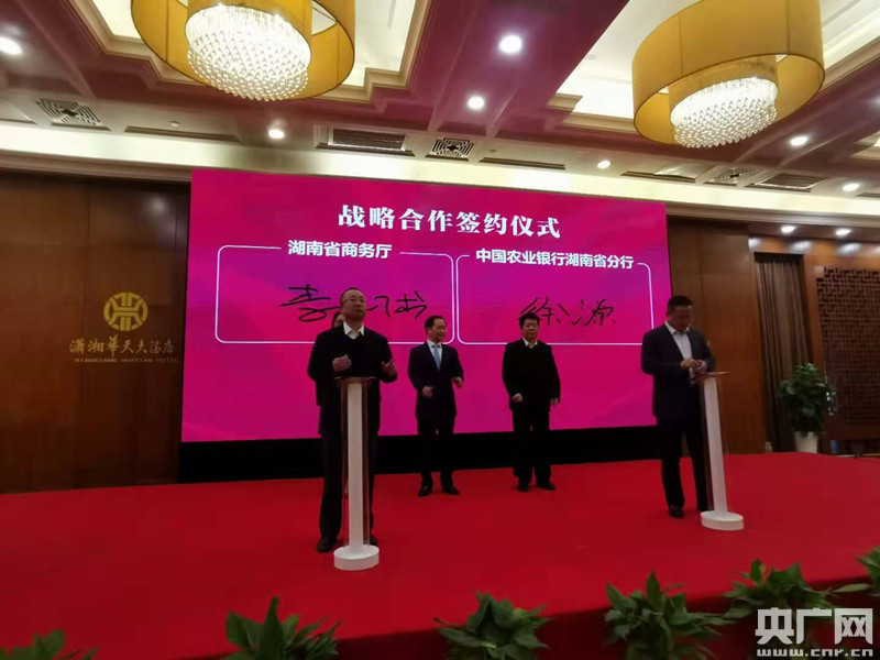 會上,農(nóng)行湖南省分行和湖南省商務(wù)廳簽署了戰(zhàn)略合作協(xié)議,雙方將深入落實(shí)湖南省委省政府“創(chuàng)新引領(lǐng) 開放崛起”戰(zhàn)略,按照湖南自由貿(mào)易試驗(yàn)區(qū)總體方案要求,充分發(fā)揮各自資源稟賦優(yōu)勢,全面支持湖南發(fā)揮“一帶一部”區(qū)位優(yōu)勢,扎實(shí)做好“六穩(wěn)”工作,全面落實(shí)“六!比蝿(wù),特別是全力協(xié)同做好穩(wěn)外貿(mào)、穩(wěn)外資工作,切實(shí)推進(jìn)湖南自貿(mào)實(shí)驗(yàn)區(qū)建設(shè)和商務(wù)事業(yè)發(fā)展。湖南農(nóng)行將充分發(fā)揮全牌照國有商業(yè)銀行金融服務(wù)優(yōu)勢,在自貿(mào)園區(qū)建設(shè)、招商引資、湘企“走出去”、普惠金融、服務(wù)三農(nóng)和“減費(fèi)讓利”等方面全面發(fā)力,與湖南省商務(wù)廳共同構(gòu)建開放型經(jīng)濟(jì)與金融合作平臺,解決企業(yè)發(fā)展金融需求,提供全方位、優(yōu)質(zhì)、高效的金融服務(wù),為湖南省新時期的經(jīng)濟(jì)高質(zhì)量發(fā)展做出貢獻(xiàn)。