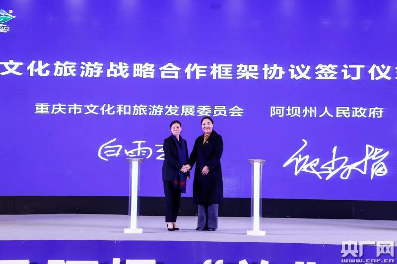 央廣網(wǎng)重慶11月30日消息(記者陳鵬)為全面貫徹落實(shí)黨中央關(guān)于“加快推動(dòng)成渝地區(qū)雙城經(jīng)濟(jì)圈建設(shè)”的戰(zhàn)略部署,11月30日,阿壩州全域旅游重慶推介會(huì)暨重慶·阿壩文化旅游戰(zhàn)略合作框架協(xié)議簽訂儀式在重慶隆重舉行。雙方簽訂了《重慶市文化和旅游發(fā)展委員會(huì) 阿壩州人民政府文化和旅游戰(zhàn)略合作框架協(xié)議》《重慶市 阿壩州5A景區(qū)“9+3”戰(zhàn)略合作協(xié)議》。