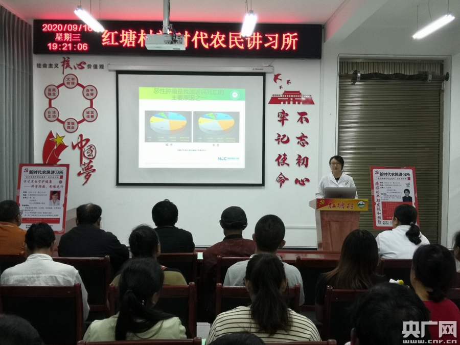 2020年9月16日,中山大學(xué)腫瘤防治中心孔亞楠醫(yī)生在紅塘村“新時(shí)代農(nóng)民講習(xí)所”做癌癥早期篩查健康科普講座(央廣網(wǎng)發(fā) 張國(guó)宇 攝)