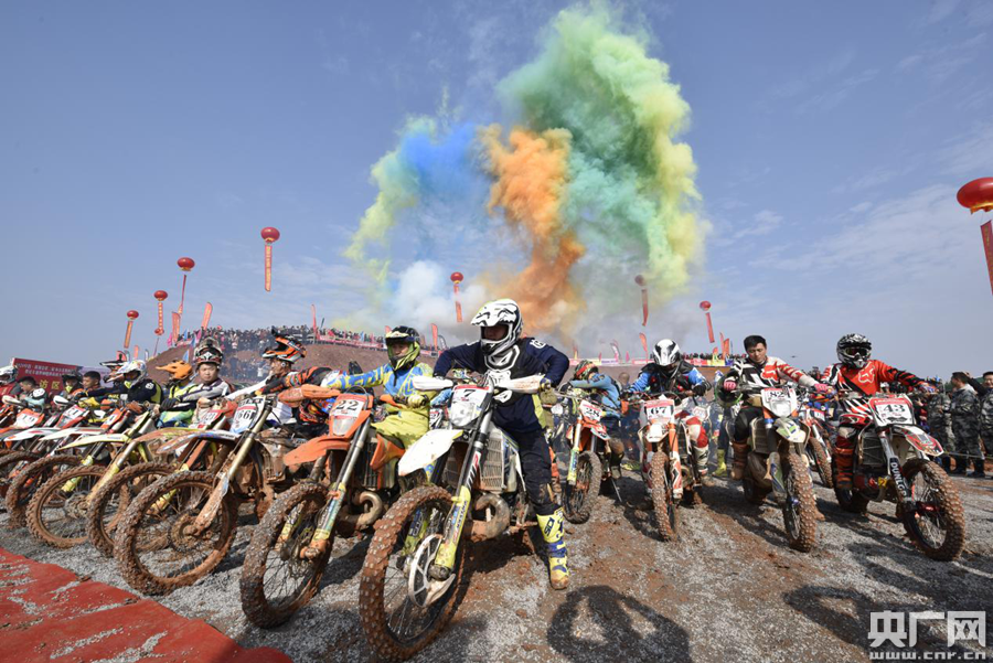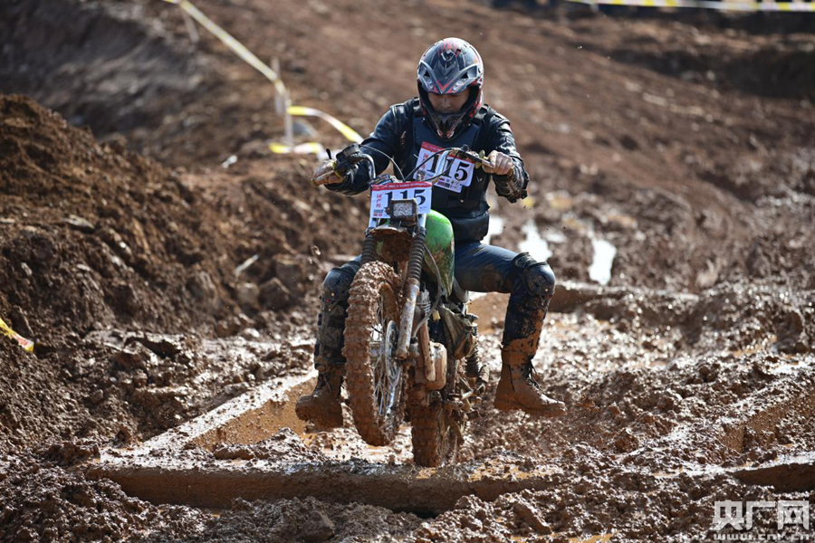 當(dāng)天上午,簡(jiǎn)短的開幕式之后,選手們分組進(jìn)入賽場(chǎng)。直線加速、漂移過彎、空中飛躍……比賽現(xiàn)場(chǎng),馬達(dá)轟鳴、塵土飛揚(yáng),選手們驚險(xiǎn)刺激的動(dòng)作,不時(shí)引發(fā)現(xiàn)場(chǎng)觀眾陣陣歡呼。