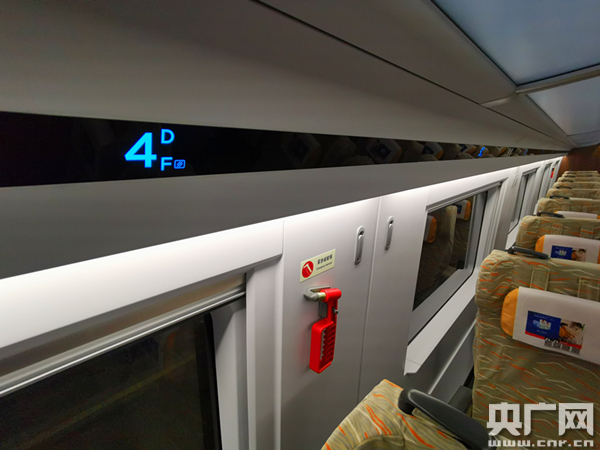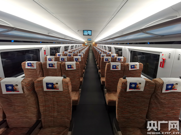 CR300BF型“復興號”動車組全列采用8輛編組,總定員613人,其中一等座48個席位,二等座565個席位。每節(jié)車廂內(nèi)設(shè)置了4個溫度傳感器,對車內(nèi)溫度的感應更敏感,智能空調(diào)系統(tǒng)讓車內(nèi)溫度更適宜。行李架過道邊緣增加250個座位顯示器,方便旅客查找核對本人座席。每節(jié)車廂內(nèi)設(shè)置半球攝像機、通道區(qū)域設(shè)置全景攝像機,可對車廂內(nèi)區(qū)域進行實時監(jiān)控。電茶爐采用先進的電磁式加熱方式,實現(xiàn)加熱元件和水分離,并具備安全童鎖功能,防止兒童燙傷。車內(nèi)增加車載無線系統(tǒng),每節(jié)車廂兩端增加2個WIFI天線,為旅客上網(wǎng)、刷劇提供便利條件。