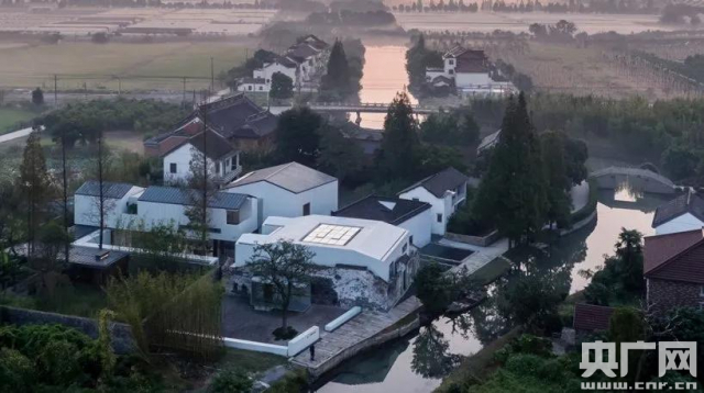 章堰村位于上海西郊的重固鎮(zhèn),是上海古文化發(fā)源地,福泉山文化的代表之一。由中建東孚城投公司投資建造的章堰村文化館,在對當地民宅“章家宅”的舊址老宅清理殘破部分后,原有的老墻得以保留,于是在古瓦青磚之間一棟被老墻包裹起來的建筑誕生了。白色新建筑部分遠看就像是從里面“長”出來的。不是一味地推倒重建,或修舊如舊,而是遵循建筑本身的歷史脈絡,將當代的設計理念和功能需求置入其中,仿佛老房子里“長”出新房子。