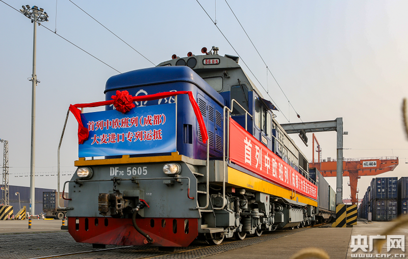 首列中歐班列(成都)大麥進口專列抵蓉(央廣網(wǎng)發(fā) 成都青白江區(qū)委宣傳部供圖)