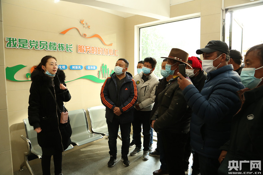 在檀溪府邸小區(qū)參觀學(xué)習(xí)黨員“雙報(bào)到”、紅色物業(yè)等工作(央廣網(wǎng)發(fā) 倫珠澤仁 攝)