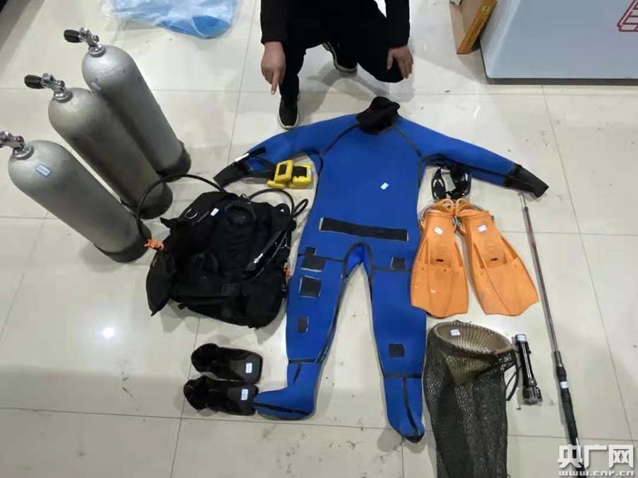 現(xiàn)場查獲的專業(yè)潛水設(shè)備(央廣網(wǎng)發(fā) 重慶市公安局供圖)