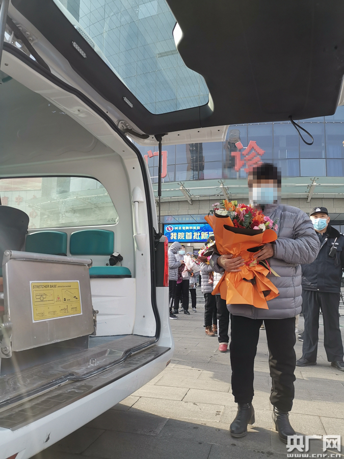 央廣網(wǎng)石家莊1月14日消息(記者杜震 孟曉光 通訊員孔令杰 孫亞飛)1月14日下午,河北省胸科醫(yī)院首批12名新冠肺炎確診患者治愈出院,18名無(wú)癥狀感染者解除集中醫(yī)學(xué)觀察,均轉(zhuǎn)入康復(fù)階段。13時(shí)許,出院患者分批有序走出隔離病房,收到了工作人員送上的鮮花和祝福。