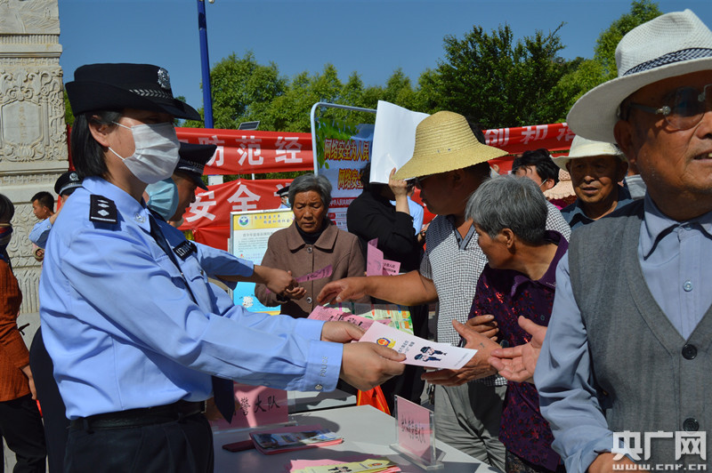 公安出入境管理部門工作人員宣傳出入境知識(shí)(央廣網(wǎng)發(fā) 甘肅省公安廳供圖)