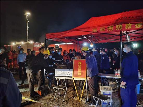 23時(shí)許深圳公益救援隊(duì)已在附近集合時(shí)刻準(zhǔn)備支援,他們主要負(fù)責(zé)救援協(xié)助、物資保障等支援工作。凌晨12時(shí)30分許,多輛泡沫消防車進(jìn)入救援現(xiàn)場(chǎng),與此同時(shí),新一批的深圳公益救援隊(duì)已經(jīng)集結(jié)!