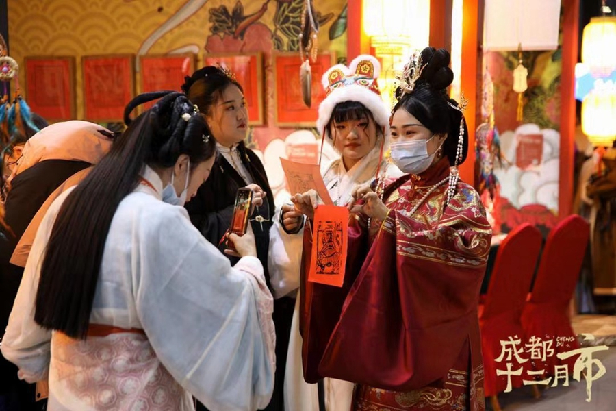 據(jù)介紹,成都自古因商而立、因商而興。從唐代開始,成都每個(gè)月都會在當(dāng)時(shí)最繁華的大慈寺一帶,舉行類似于現(xiàn)在商品交易博覽會的集會,到了宋代,這種交易會形成了“十二月市”的固定叫法。北宋趙抃在《成都古今集記》中明確記載了“成都十二月市”:“正月燈市,二月花市,三月蠶市,四月錦市,五月扇市,六月香市,七月七寶市,八月桂市,九月藥市,十月酒市,十一月梅市,十二月桃符市!