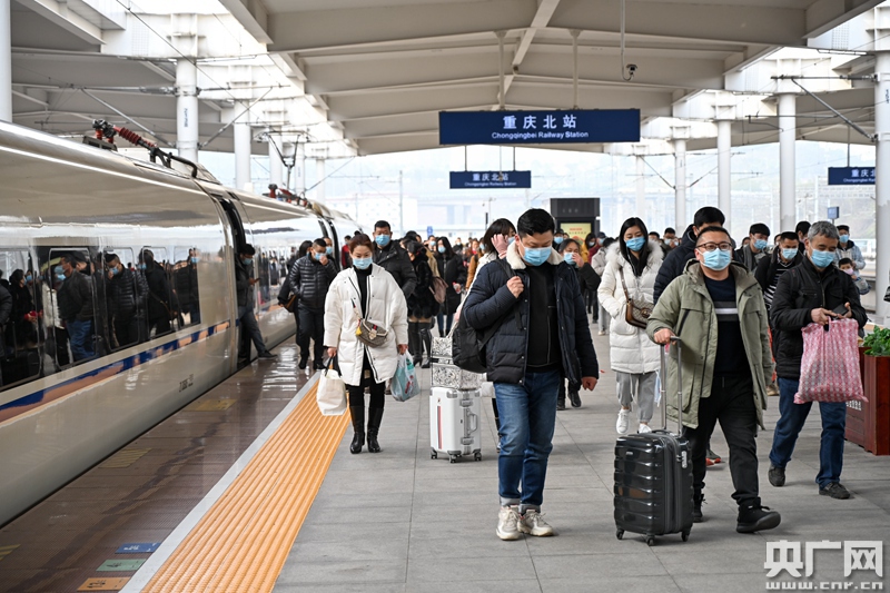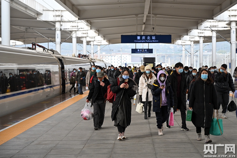 1月28日,由萬州北開往重慶北的C6403次旅客列車到達(dá)重慶北站(央廣網(wǎng)發(fā) 通訊員包亮 攝)