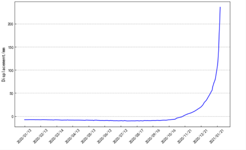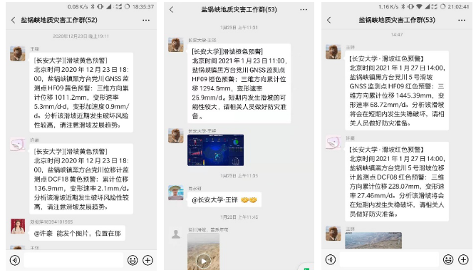 2021年01月27日20時(shí)53分,長(zhǎng)安大學(xué)的“高精度北斗地質(zhì)災(zāi)害監(jiān)測(cè)預(yù)警平臺(tái)”再次緊急發(fā)出了滑坡即將失穩(wěn)的紅色告警,7分鐘后滑坡發(fā)生失穩(wěn)破壞!27日14點(diǎn)47分,當(dāng)?shù)馗刹咳罕娛盏介L(zhǎng)安大學(xué)發(fā)出的紅色預(yù)警信息后及時(shí)組織當(dāng)?shù)厝罕姳茈U(xiǎn),6至7小時(shí)后一起體積近10萬(wàn)方的黃土滑坡發(fā)生。