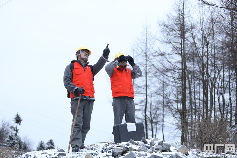 “以雪為令、迎雪而上”。積雪的路面透露出未知和危險(xiǎn),李相如和同事周良每走一段路,樹上的雪便會(huì)簌簌地掉下!斑@里很滑,要小心一點(diǎn),不要踩在凍土上,找雪厚的地方下腳!弊咴谧钋懊娴娜耍偸菚(huì)提前用腳試試雪,看是不是實(shí)土,再提醒后面的人沿著他走過的路前進(jìn)。然而,比起腳踏雪地,他們更小心的是手中的測量設(shè)備。