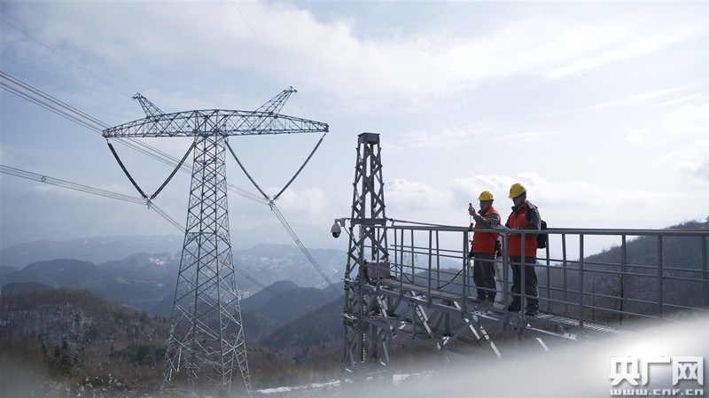 央廣網(wǎng)重慶2月10日消息(記者趙聰聰 通訊員李濤 鄧毅)2月9日,離除夕還有兩天,重慶巫山騾坪鎮(zhèn)大埡村,雪花飛舞,銀裝素裹。國網(wǎng)重慶檢修公司輸電運(yùn)檢員工李相如和同事周良艱難走到±800千伏祁韶線3417號(hào)塔下,仔細(xì)檢查完塔身基礎(chǔ)后,嫻熟地操縱無人機(jī),對鐵塔上的線路、瓷瓶、塔材等設(shè)備覆冰情況進(jìn)行全面巡檢。