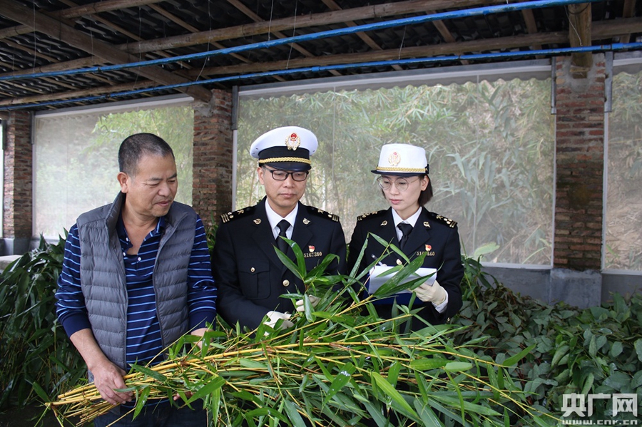 “我們?nèi)粘1O(jiān)管主要查看竹葉有沒有病蟲害,例如竹葉表面有沒有纏有白絲的葉苞,如果有就表明葉苞里面可能包裹著竹螟幼蟲。這是一種能嚴重危害竹子的卷葉蟲,要及時做出處理!睋荛_眼前密密麻麻的竹叢,廣州海關(guān)所屬從化海關(guān)屬地外勤科副科長徐蕾拿起竹子前段較嫩的竹葉,仔細翻開查看,“這些竹葉都十分健康、鮮嫩,是大熊貓最喜愛的食物!
