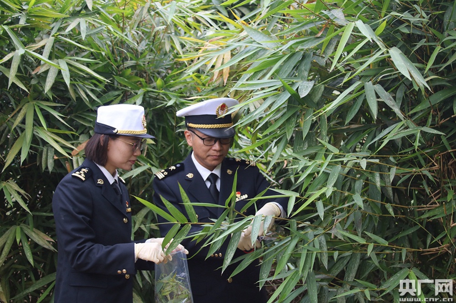徐蕾和同事用剪刀抽取長度約50厘米連枝帶葉的竹枝,放入取樣袋,“我們需要抽取約1公斤樣品,送廣州海關(guān)技術(shù)中心進行農(nóng)殘項目檢測。”