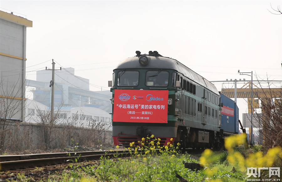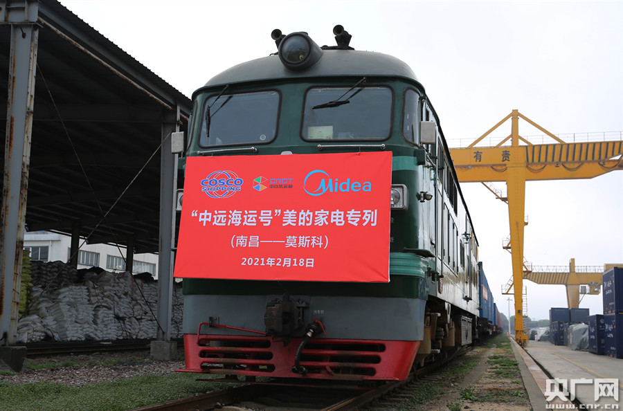 央廣網(wǎng)南昌2月18日消息(記者謝元森 通訊員李翔 周娜)2月18日,滿載50車洗衣機(jī)、洗碗機(jī)等電器的中歐班列專列由南昌(向塘)國際陸港橫崗站駛出,預(yù)計(jì)15天后抵達(dá)俄羅斯莫斯科。這也是江西省開行中歐班列以來,首次為家電企業(yè)開行的出口專列,班列貨價(jià)約148萬美元。