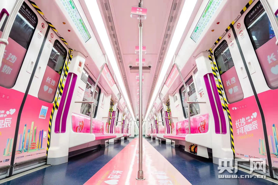 網(wǎng)友們發(fā)現(xiàn)“長(zhǎng)沙整座城市都是粉粉噠”:長(zhǎng)沙地鐵3、4、5號(hào)線都推出了各自的粉紅專列,地鐵4號(hào)線的座椅還被刷成了粉紅色,地鐵的語音播報(bào)還做了特別定制。長(zhǎng)沙的38路公交車推出了粉紅專車,隨處可見的出租車頂燈也變成了粉紅色,并播放“長(zhǎng)沙手可摘星辰”等字樣。