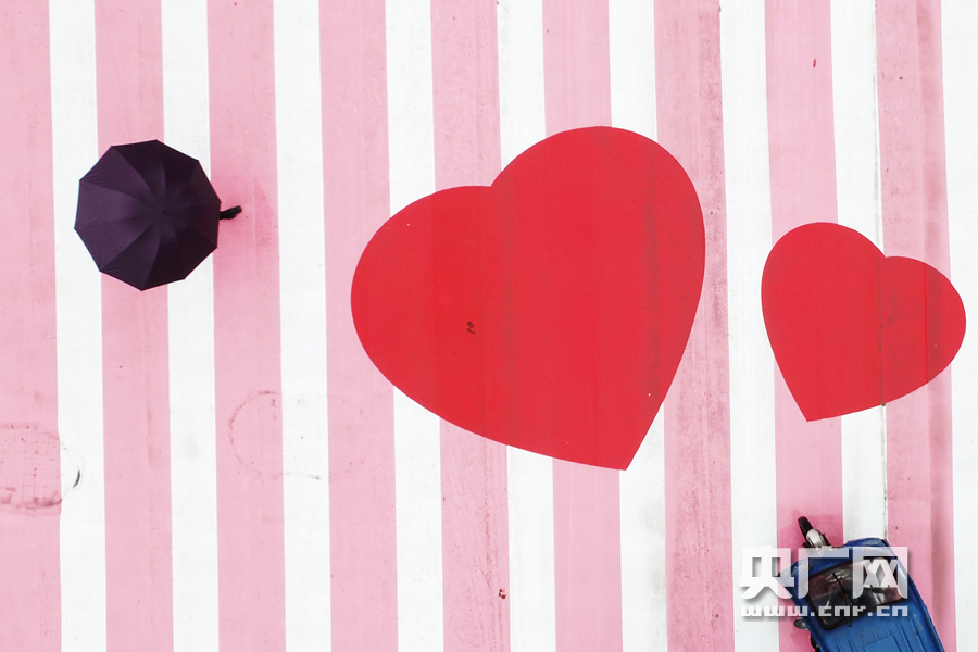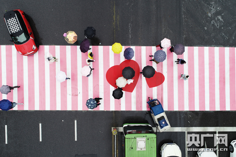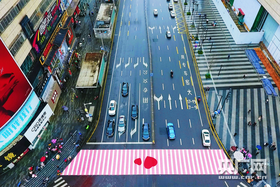 央廣網(wǎng)長(zhǎng)沙3月8日消息(記者傅蕾) 3月8日一大早,長(zhǎng)沙司門口附近早起的市民發(fā)現(xiàn),解放西路上的斑馬線變成了粉紅色。路人紛紛拍下圖片和短視頻,發(fā)布到抖音、微博,這條十字交叉斑馬線被粉刷成粉紅色和白色相間,并點(diǎn)綴著紅色愛心。