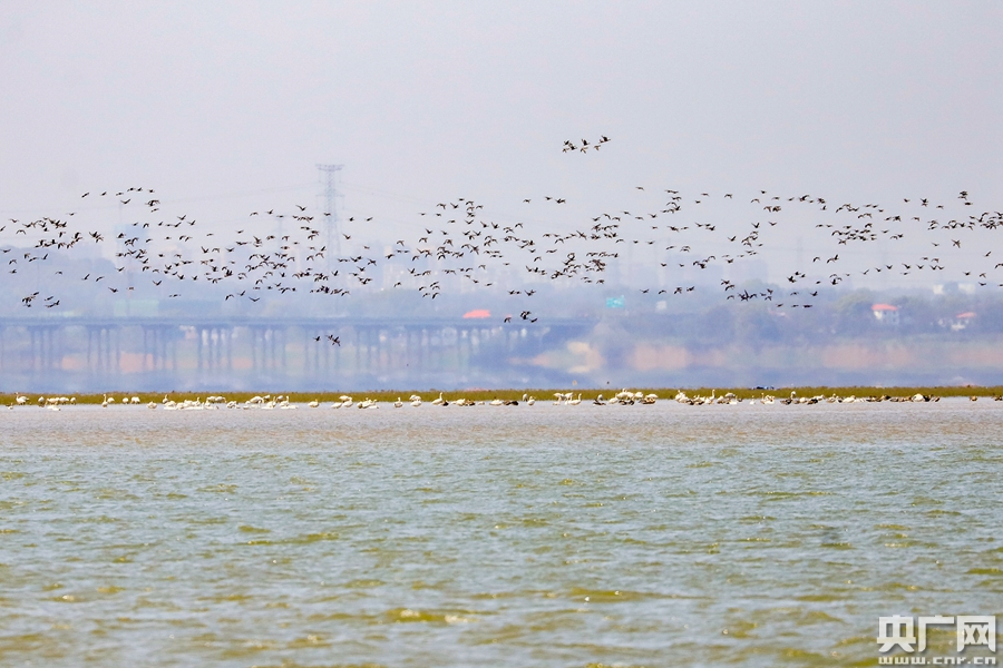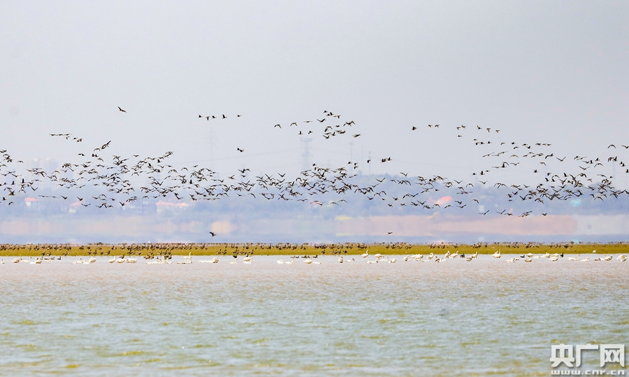大批候鳥(niǎo)在鄱陽(yáng)湖集結(jié)準(zhǔn)備遷徙(央廣網(wǎng)發(fā) 通訊員供圖)