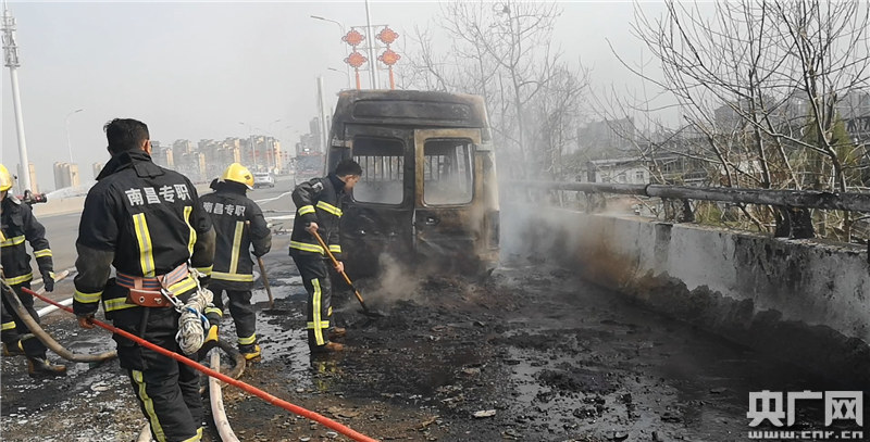 央廣網(wǎng)南昌3月26日消息(記者熊方 李竟成 通訊員章斌 楊晨)3月26日14時(shí)29分,在江西南昌英雄大橋上,一輛依維柯小客車行駛途中突然起火,車上有液體流出導(dǎo)致火勢(shì)較大,現(xiàn)場(chǎng)濃煙滾滾并伴有爆炸聲響,火災(zāi)未造成人員傷亡。