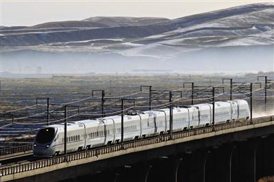 12月13日,一列測試動車在蘭新高鐵甘肅張掖段疾馳。