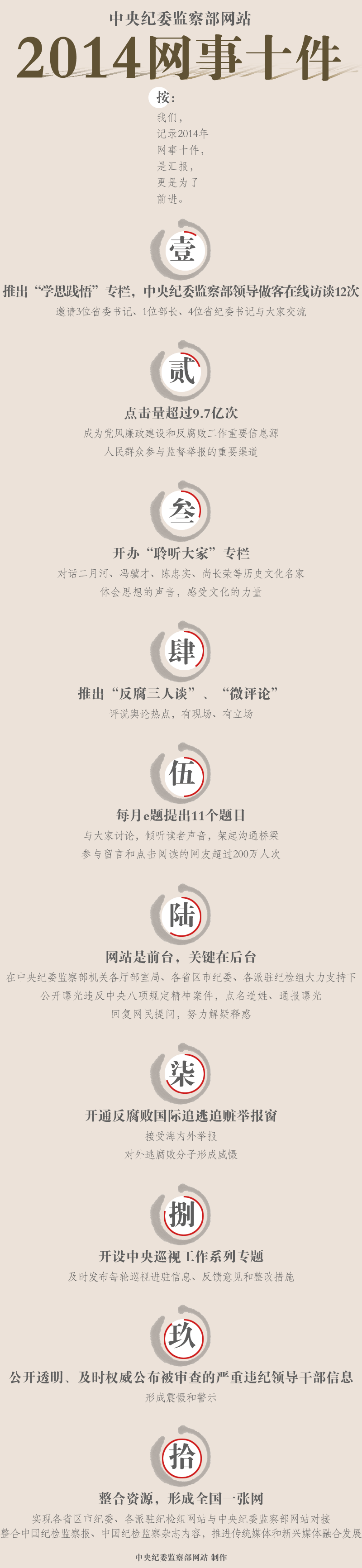原標(biāo)題:中央紀(jì)委監(jiān)察部網(wǎng)站2014網(wǎng)事十件