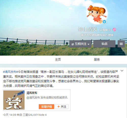 南京紀(jì)委:"副區(qū)長(zhǎng)落馬在女兒婚禮現(xiàn)場(chǎng)被帶走"報(bào)道失實(shí)