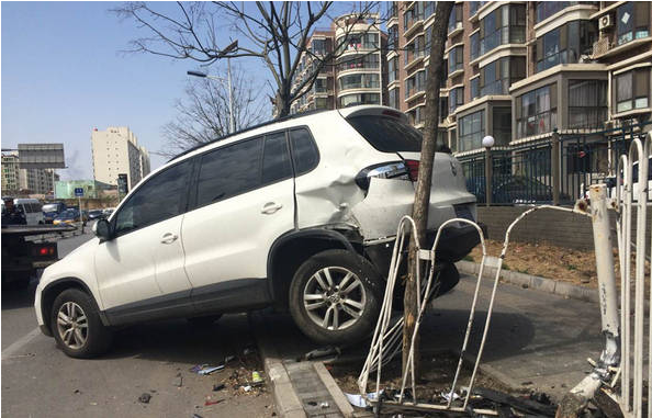 女司機(jī)停車連撞6道護(hù)欄5輛車 被認(rèn)是暴徒