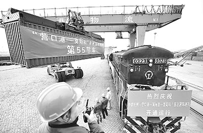 2014年10月18日,國(guó)內(nèi)第一個(gè)經(jīng)滿洲里口岸過(guò)境直達(dá)莫斯科的國(guó)際集裝箱班列,在遼寧營(yíng)口港裝完55節(jié)車(chē)皮之后徐徐開(kāi)出。
