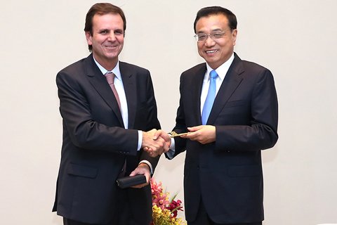 在巴西最著名的城市里約熱內(nèi)盧,李克強(qiáng)從市長(zhǎng)手里接受了一把金色的“城市鑰匙”。此前獲贈(zèng)過(guò)這把“城市鑰匙”的,只有巴西前總統(tǒng)盧拉、教皇方濟(jì)各、國(guó)際足聯(lián)主席布拉特、國(guó)際奧委會(huì)主席巴赫4位客人。