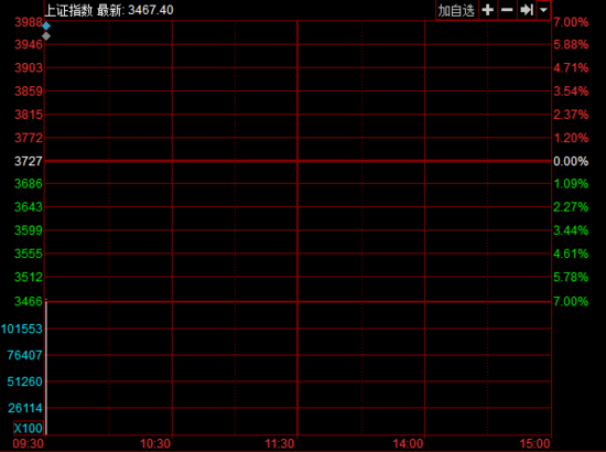 開盤:兩市大幅低開 滬指下跌6.97%擊穿3500點(diǎn)