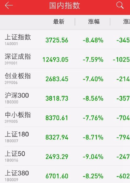 A股急跌8.48% 創(chuàng)8年來(lái)最大跌幅