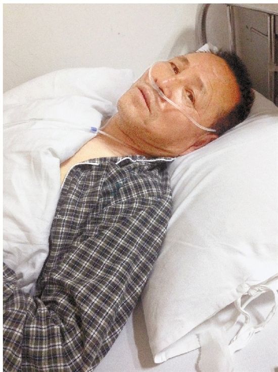 昨天下午,溫嶺第一人民醫(yī)院病床上,張忠法頭發(fā)花白皺紋滿面,鼻子上插著軟管,通過一個(gè)儀器艱難呼吸著。