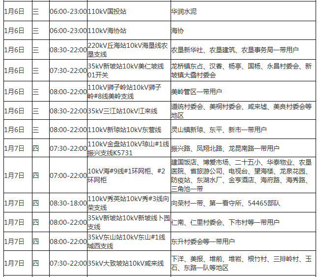 ?诠╇娋纸裉彀l(fā)布2016年1月4日至20日停電公告,以進行供電線路改造升級、設備消缺維護。?诓糠志用裼秒妼⑹艿接绊,請?zhí)崆白龊脺蕚洹?/p>