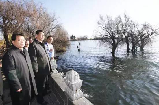 圖為:2015年1月20日,習近平來到大理白族自治州大理市灣橋鎮(zhèn)古生村,仔細察看洱海邊的生態(tài)保護濕地。