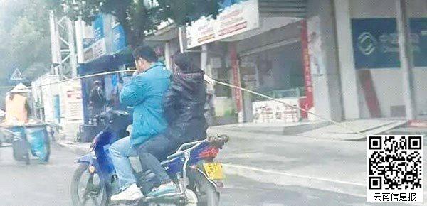 3月4日,保山市龍陵縣公安局交警大隊通報了一起令人哭笑不得的違法行為:2月29日上午,城區(qū)街面巡邏組正在巡邏時,只見一男子一手駕駛著摩托車載著一女子,兩人肩上扛著一根長12米的鋼筋,并用手扶著,這種“藝高人膽大”的行為,也著實讓民警捏了一把冷汗。