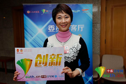 全國政協(xié)委員董圓圓為“創(chuàng)新”發(fā)展理念點(diǎn)贊。中國青年網(wǎng)記者 李拓 攝