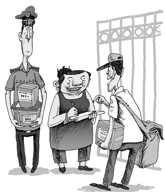 比如遇上一個用喇叭喊著收舊手機的男人,大媽就拉上人家,“聲音小點小點,小區(qū)里不能進(jìn)來的!