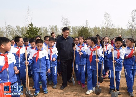 中共中央總書記、國家主席、中央軍委主席習(xí)近平5日上午在參加首都義務(wù)植樹活動時強(qiáng)調(diào),中華民族偉大復(fù)興要靠全體中華兒女共同奮斗!笆濉睍r期既是全面建成小康社會的決勝階段,也是生態(tài)文明建設(shè)的重要時期。發(fā)展林業(yè)是全面建成小康社會的重要內(nèi)容,是生態(tài)文明建設(shè)的重要舉措。各級領(lǐng)導(dǎo)干部要帶頭參加義務(wù)植樹,身體力行在全社會宣傳新發(fā)展理念,發(fā)揚(yáng)前人栽樹、后人乘涼精神,多種樹、種好樹、管好樹,讓大地山川綠起來,讓人民群眾生活環(huán)境美起來。