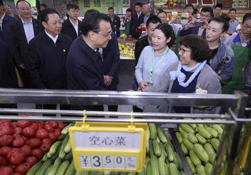 在成都益民菜市,李克強與群眾交流,了解市場供應、農藥殘留檢測等情況,對這里通過“互聯網+”搭建農產品直銷大平臺、降低成本表示贊許。他說,要切實落實“菜籃子”市長負責制,保證市場供應,嚴守食品安全,保障困難群眾基本生活。