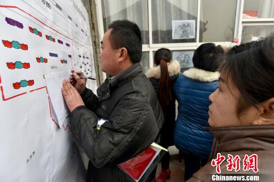 圖為被征遷土地居民正在選擇回遷安置樓房號。 馮濤 攝