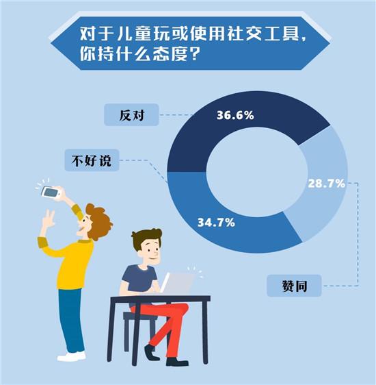 對(duì)于兒童使用網(wǎng)絡(luò)社交工具,受訪者態(tài)度不一。調(diào)查中,36.6%的受訪者表示反對(duì),僅28.7%的受訪者表示支持,34.7%的受訪者回答不好說(shuō)。