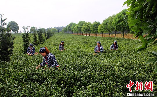 江西省永豐縣教師變身“采茶女”在該縣鹿岡鄉(xiāng)茶園里體驗(yàn)采茶。 李建平 攝