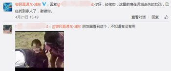 近日,微信、微博等社交媒體流傳一條“被淋濕的哭泣小女孩”的視頻,配發(fā)文字稱“這小女孩被人販子拐騙讓好心攔住了,誰的群多發(fā)出去,讓寶貝回家!尤其發(fā)在南方,四川,云南,貴州廣西,江浙,廣東廣西戰(zhàn)友群里或社會群里!因為聽口音是南方口音,求擴散”。4月21日,上海浦東警方回復稱,經(jīng)核實,這是19日在泥城走失的女孩,當晚已經(jīng)找到家人了。25日,公安部刑事偵查局副巡視員陳士渠在微博上回應此事稱:“接報,事發(fā)上海浦東泥城鎮(zhèn),經(jīng)浦東警方核實孩子并非被拐,已經(jīng)回家!