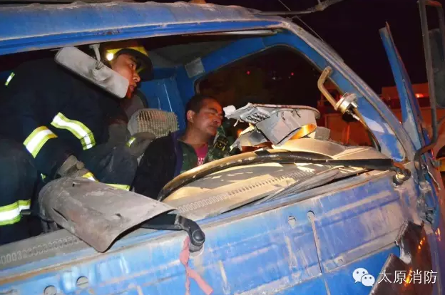 車禍的起因?yàn)橐惠v車逆行。事故發(fā)生后,其中一輛貨車的司機(jī)被困。 太原市公安消防支隊(duì)柴村中隊(duì)官兵迅速到達(dá)現(xiàn)場(chǎng),當(dāng)時(shí)貨車司機(jī)被困駕駛室內(nèi),意識(shí)已經(jīng)開始模糊,如果不及時(shí)搶救,很可能有生命危險(xiǎn)。指揮員立即命令警戒組兩名官兵對(duì)周圍進(jìn)行現(xiàn)場(chǎng)警戒,救援組官兵利用液壓破拆工具及鐵鋌等對(duì)駕駛室車門、座位等部位進(jìn)行破拆。