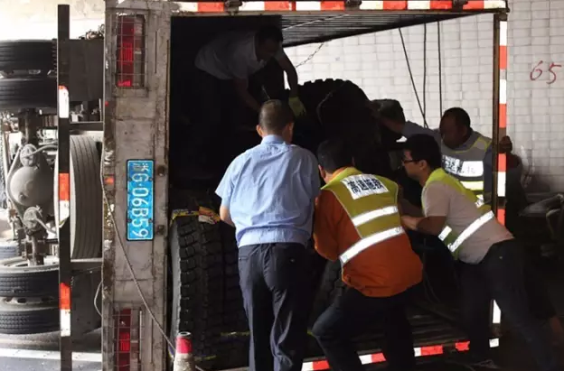 駁貨后,民警發(fā)現(xiàn)本來裝在小型貨車的輪胎,結(jié)果裝出了兩車。真是兩車貨物一車裝,貨車欲與火車比。