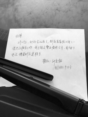 車窗上有肇事者留的字條