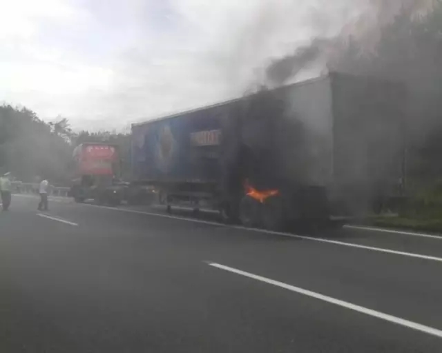 直擊現(xiàn)場:剎車片過熱起火 貨車高速上自燃