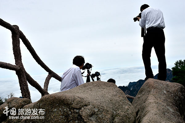 如今,在黃山頂上活躍著一群攝影人,有園林防火隊(duì)員、山上酒店員工等,確切地說,他們都是攝影愛好者,長年工作生活在黃山之巔,一開始他們以攝影找樂,以攝影打發(fā)空閑時(shí)間,后來攝影成為了他們?cè)谏缴系淖畲蟮臉啡ず蛺酆,且樂此不疲。近水樓臺(tái)先得月,黃山攝影人占盡地利,很多外地人都很是羨慕,覺得黃山山上的攝影人太幸福了,出門就能拍到心儀的美景。云海大都出現(xiàn)在雨后,但不是每次下雨后都有云海出現(xiàn)。就是有云海出現(xiàn),黃山腳下的一些人得知,有時(shí)上山后都會(huì)撲空,因?yàn)檫@時(shí)云海已消失得無影無蹤。